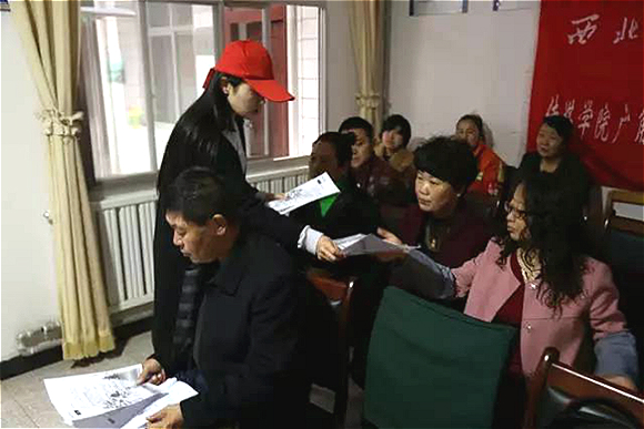 2017年3月23日, 8名传媒学子走进甘肃省兰州市安宁区安宁堡街道红艺社区,结合当地桃树种植实际开展农险宣讲活动。