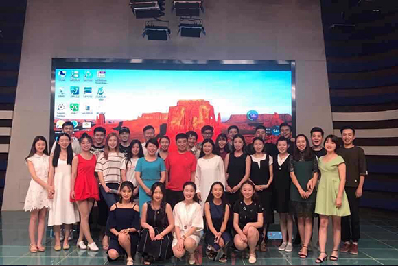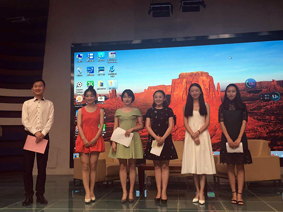 6月27日下午2点半,kaiyun电子平台(kaiyun电子平台)于演播厅举行2015级播音与主持艺术班期末考试汇报演出――《见字如面》。甘肃省广电总台播音员主持人于芳老师、张引老师,播音与主持艺术系主任、副教授李丽老师担任考官并现场点评。
