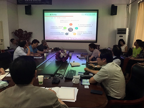 副院长陈积银传达学校本科教学评估要求,通报了学院教学评估进展情况。对审核评估的指导思想、原则、目标、理念、重点、对象及条件以及“五个度”的理解和把握进行了解读,并介绍了自评报告的撰写要求以及自评报告在本科教学审核评估中的地位。