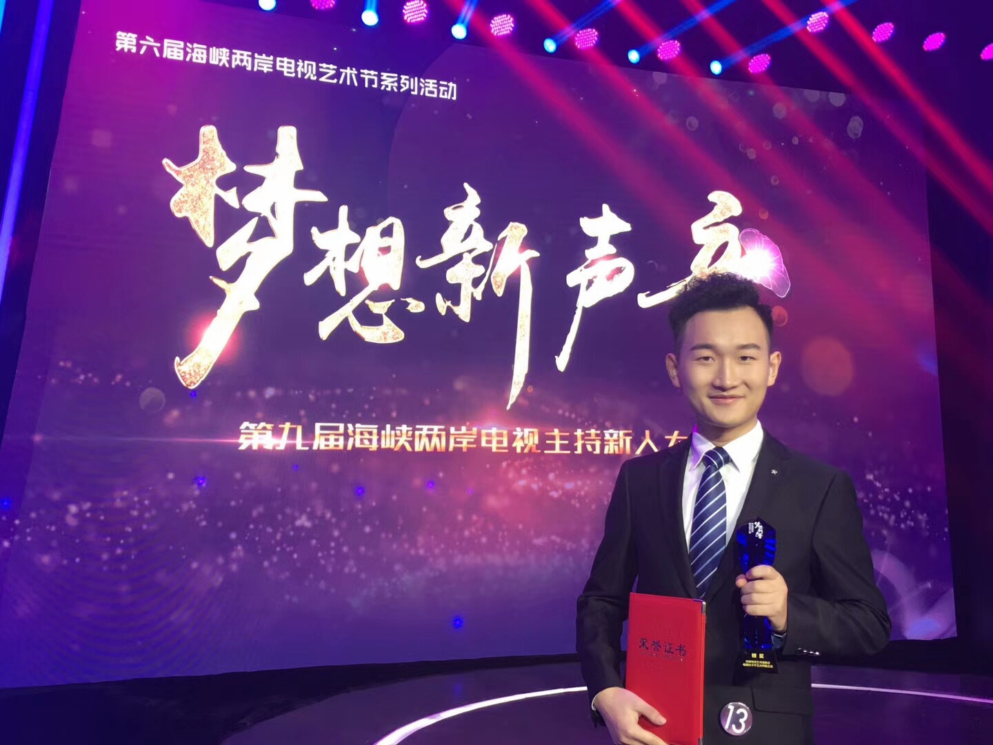 11月24日下午,第九届海峡两岸电视主持新人全国总决赛正式拉开帷幕,来自全国26个省市地区的33位选手同台竞技。著名主持人、中国演艺集团首席演出官周涛、中国视协分党组成员、副秘书长、国家一级导演范宗钗,北京大学艺术学院副院长俞虹,央视七套著名主持人毕铭鑫,台湾著名主持人、演员、歌手郭彦甫担纲评委。在第一轮《创意主播》环节,传媒学子王强第13位出场,以“阅读”为主题,既蕴含丰富的人生哲理,又很好地展现出自身风范,同时凭借厚实,磁性的嗓音,依靠出色的发挥,给评委老师留下深刻的印象,成功以第四名的成绩进入第二轮。在第二轮的《两两对阵》环节中,王强经过抽签与上海代表队的选手组成搭档,在合作题为“传统佳节让我们走得更近”的展示中,王强以轻松而具有思辨的主持风格,赢得了观众的掌声,最终仅以0.5分之差未能晋级,获得银奖。
