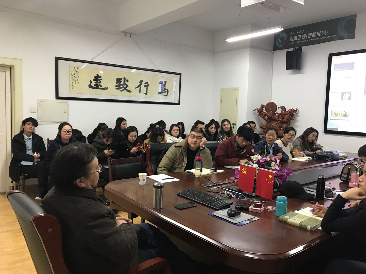 最后,徐老师与在场的学生进行了深入的交流与探讨。同学们就自身的经历谈了自己的想法和感受。徐老师听后动情地说到,如今年近半百,自己和学生更像是亲人,希望今后与同学们有更多的机会聊聊感情,谈谈心灵。讲座结束后,掌声热烈响起,迟迟未平。