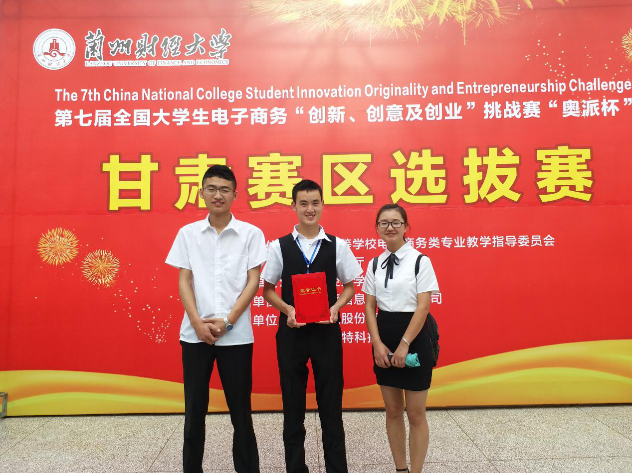 2017年6月10日,kaiyun官网14级广播电视编导2班张宗平同学和他的团队参加第七届全国大学生电子商务“创新、创意及创业”挑战赛甘肃赛区选拔复赛中,被甘肃省教育厅授予三等奖。