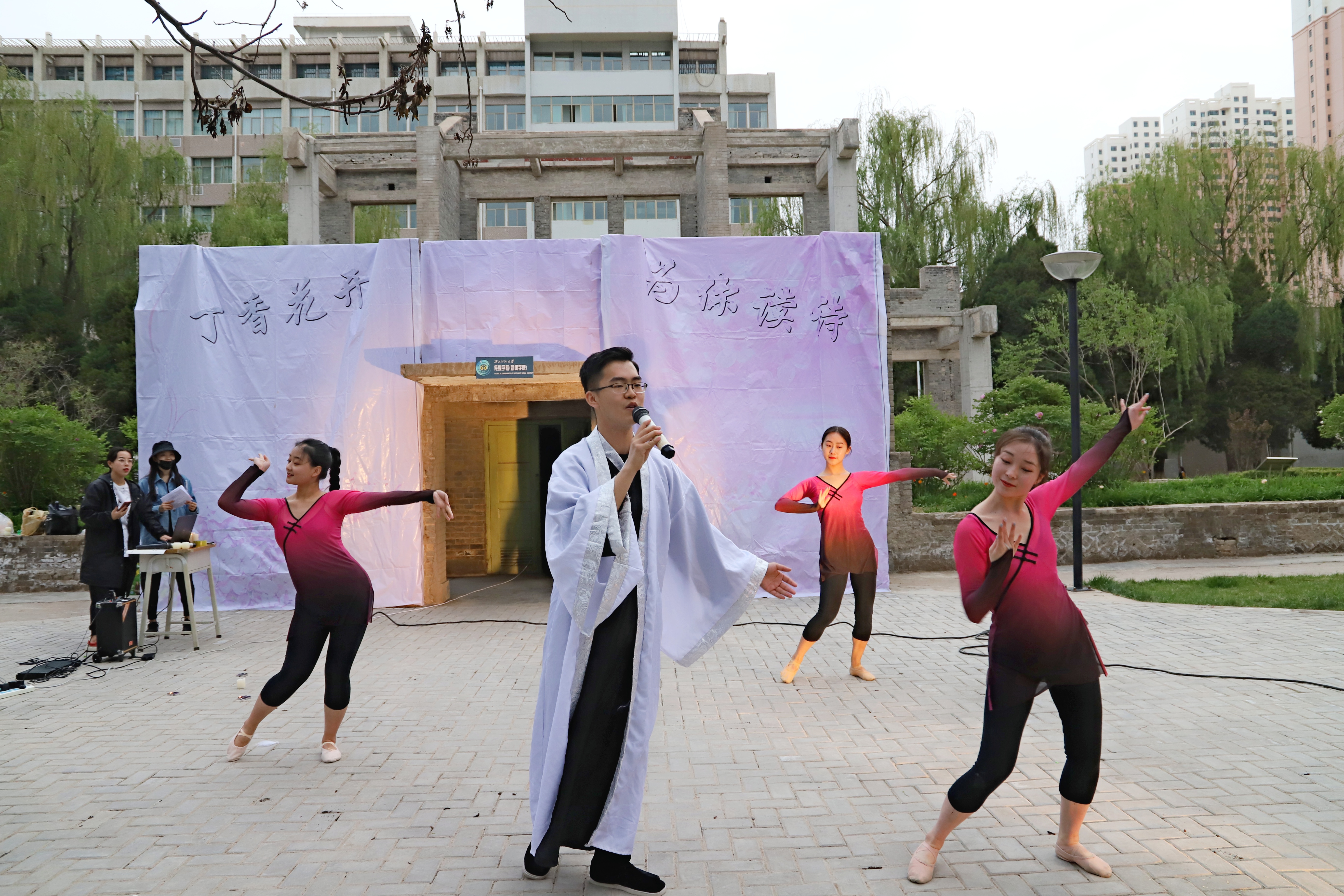 为深入贯彻落实习近平总书记关于弘扬中华优秀传统文化系列重要讲话精神,进一步发挥校园文化活动的育人功能,引导广大学生阅读经典,阐发中华优秀传统文化,kaiyun电子平台于4月25日下午举办“丁香花开,为你读诗”诗词朗诵会。