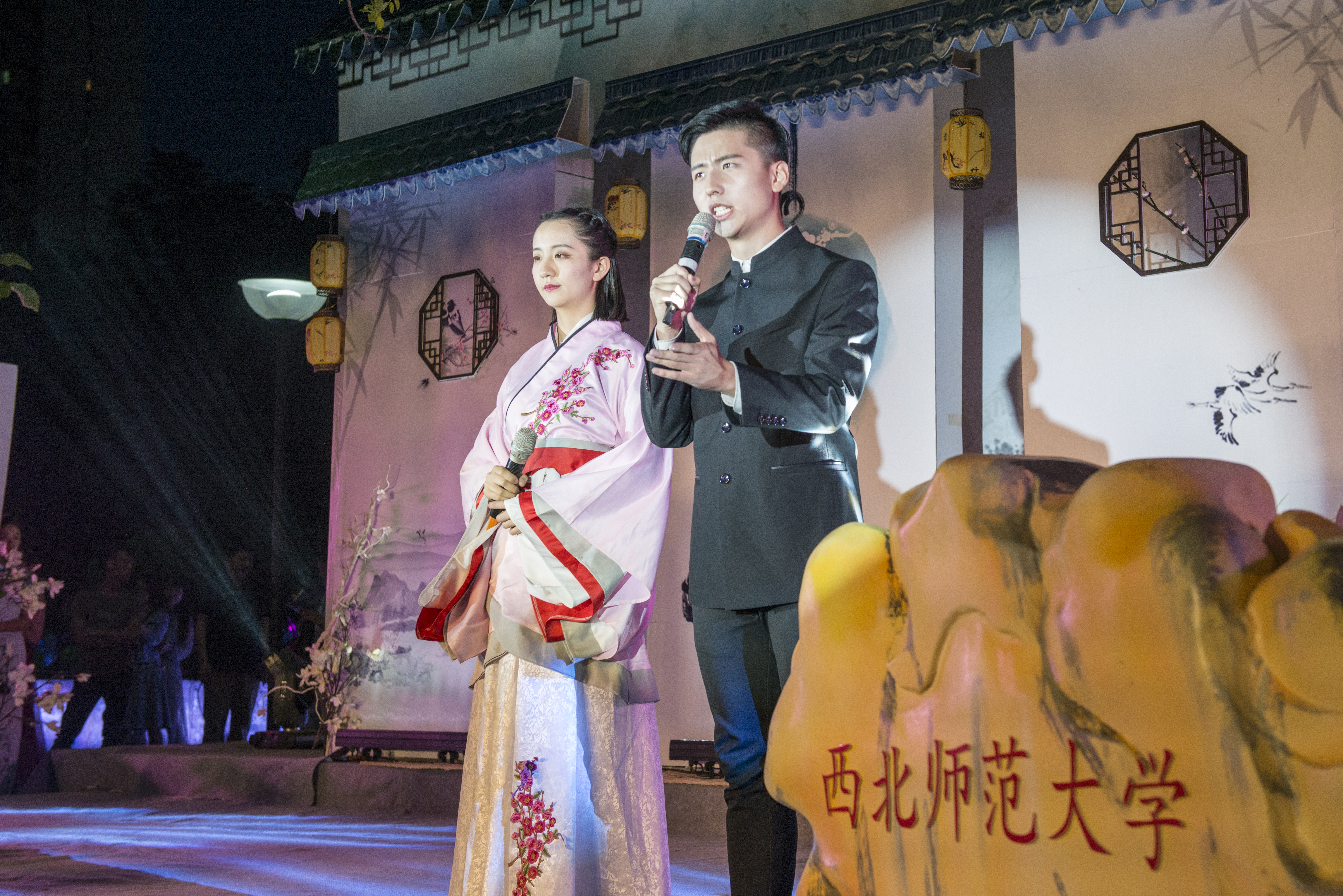 学校党委书记张俊宗和邓小娟、曹进、徐兆寿、韩高年四位院长声情并茂的朗诵将诗会氛围推向高潮。四位诗人和甘肃省著名朗诵艺术家临溪也为同学们即兴进行了朗诵。