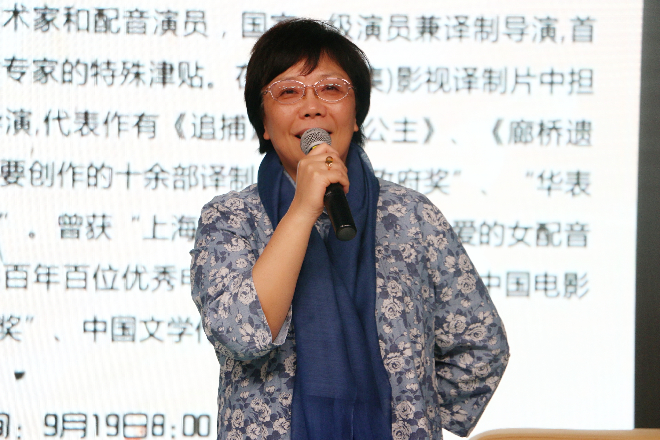 之后,丁老师朗诵了《祖国啊,我亲爱的祖国》和《关于爱》两个作品。丁老师的声音时而激昂、时而低沉、时而深情、时而邃远。朗诵结束,演播厅内掌声经久不息。