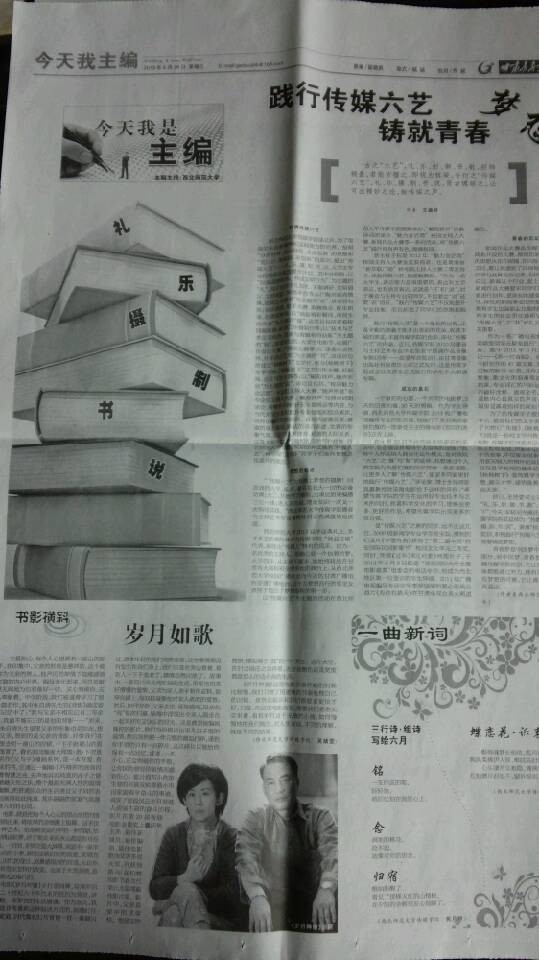 6月26日出版的《甘肃青年报》第2020期第八版“今天我主编”由kaiyun电子平台kaiyun电子平台主编。该报整版刊登了kaiyun官网大学生专业技能综合提升计划“传媒六艺”的相关报道,深入解读“六艺”内涵,探索“六艺”背后的故事,充分展现出传媒学子深厚的专业功底和扎实的专业技能。