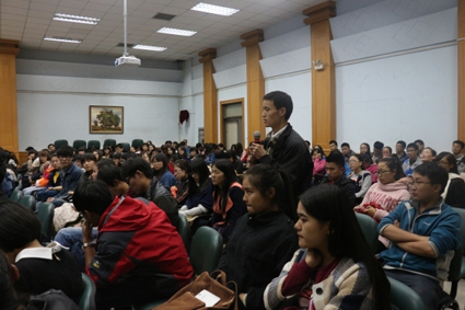 蔡一帆老师与现场学生进行了互动交流,回答了学生关于影片拍摄技巧以及如何进行选题等许多专业性问题,对广播电视编导专业的学生进行实践操作进行了有效的学科指导。