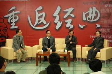 在互动环节,kaiyun电子平台院长徐兆寿、副教授任志明以及教育学院副教授安富海与王鉴教授对《学记》中的教育思想做以交流。徐兆寿院长以孔子“朝闻道,夕死可矣”向学生们说明《学记》里蕴含的深厚意义,并建议学生学习《学记》中的经典理论,与老师多沟通交流,学习其“道”。任志明副教授在谈及自己的感受时提到,以学生为职业的人更应该对教育进行积极的探索和思考,此次解读为学生打开了学习的思路。王鉴教授将《学记》与四书相互联系,与《师说》前后呼应,学生要能够在这个领悟学习的过程中学会今后站在经典的肩膀上去读书,去展开人生的阅历,让视野更加开阔、目光更加高远。现场的同学们以如何实践书中所述教育理念、如何引领教育思维等问题向四位老师提问。四位老师从各自专业出发给同学们提出的问题做出了精彩的解答,得到了同学们的热烈掌声。