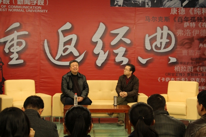 李并成老师首先为大家解释了显学的概念,显学,即国际上广泛关注、产生重大影响的学科。在讲述敦煌的地理位置及其地理意义时,李并成老师着重讲述了河西走廊及其地位。现今,学界对敦煌学的研究缘起于王道士和藏经洞的发现,这当中他讲述了敦煌文物外流,如斯坦因、伯希、大谷光瑞等人诱骗王道士带走了藏经洞的文物。他认为:“敦煌学并非一门单一的学科,它实际上是一门包括许多学科的群体性学问。如果从学科本身所研究的客体上来看,敦煌学应是指以敦煌遗书、敦煌艺术、敦煌史地、敦煌简牍为主要研究对象的一个学科群。”对于中西方飞天的不同,他表示:西方的飞天是借助翅膀,在人背后画翅膀。而中国敦煌壁画里的飞天则是借彩云而不靠彩云,以画中人自身的彩带飘动来展示那份自由和洒脱。在敦煌学的基本研究领域方面,他觉得十分广泛,如古代政治、文化、历史、传播学、医学等方面都有涉及。其中,他提到了传播学中的876和1156号文书,即被学术界许多学者认为是最早的报纸的两份进奏院状,而这些都与敦煌学有关。最后对于质疑声:“敦煌在国内,而敦煌学在国外”,他解释道,文革时期我们的敦煌学停滞不前,但改革开放后,我们的敦煌学已有了大的发展。他赞同敦煌在中国,敦煌学在世界的观点,并表示人应有广阔的胸襟,宽阔的视野,面对成就不能骄傲。