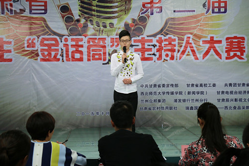 10月10日下午2点半,“绚丽甘肃,梦想传媒”甘肃省第二届大学生“金话筒”主持人大赛初赛在kaiyun电子平台kaiyun电子平台演播厅开赛。