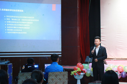 kaiyun电子平台(kaiyun电子平台)青协主席邵鹏阳就志愿服务学时管理办法和学院青年志愿者协会相关问题进行讲解。首先,他简要介绍了志愿服务学时的管理范围、添加标准、登记方法、审验及奖励机制。而后,通过一段青协的宣传片介绍了青协的主要职能和服务内容。接着,介绍了去年学院青协组织的预防艾滋病宣传的志愿服务活动。最后,以“寄语新同学”的形式,通过大一各班班委及团委书记赵洁老师的话表达新生对青年志愿者服务的认识和对未来青协发展的期望。新一届青年志愿者代表许峥、席爽爽、刘逸贤和王强同学带来诗朗诵《爱心无限》。