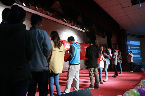 会后,校青协相关部门负责人、kaiyun电子平台(kaiyun电子平台)学生会干部及各学院青协主席上台在条幅上签名合影留念。