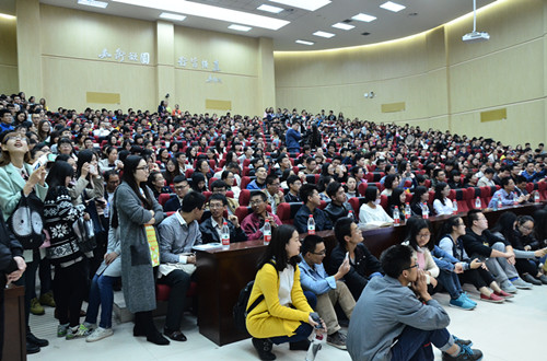 一个传媒学子问大学生应当怎样面对今天的新媒体。她说,当今时代,传媒行业正在酝酿一场巨变,各传播媒体也面临着融合。而新时代传媒如何发展,当由新时代青年决定。她说,虽然我现在也想努力去做媒体融合的事,但心有余而力不足,青年人则不一样,你们的思维天然地就是融合着的,所以更容易来做这件事。