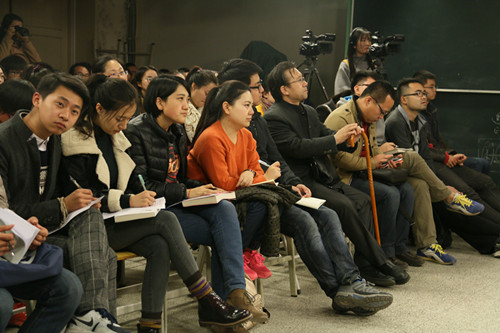 在提问环节,当学生问到“现在的中国高票房电影能否走向国际?”。张老师回答,现在肯定是不行的,因为中国文化尚缺少吸引力;而当中国综合国力大大提高的时候,中国文化软实力必也有大大提高。