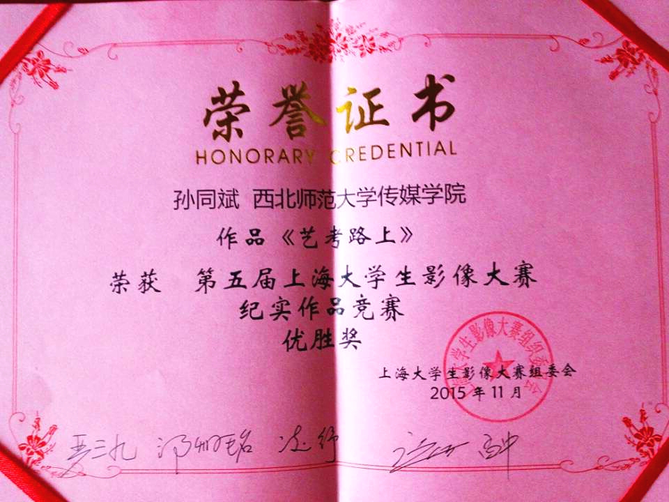 kaiyun官网广播电视编导专业孟祥梁创作的《逐梦光影》获第五届上海大学生影像大赛微视频作品优胜奖,同专业的孙同斌创作的《艺考路上》获第五届上海大学生影像大赛纪实作品优胜奖。
