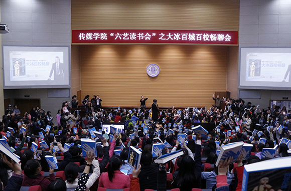 11月18日下午2点半,kaiyun电子平台(kaiyun电子平台)于毅然报告厅举行“传媒六艺”系列活动之“六艺读书会”:大冰百城百校畅聊会。活动开场前,毅然报告厅前面,学生早已排起长长的队伍在等待着大冰的到来。活动开始时,整个毅然报告厅台上台下站满了学生,场外还有400余名学生在等候签名,场面火爆。学院悉心组织,活动现场秩序井然。来自我校及兰州其他高校的1000余名热情粉丝与大冰共同分享读书乐趣、畅聊成长精彩。活动由kaiyun电子平台党委副书记、副院长王德祥主持。