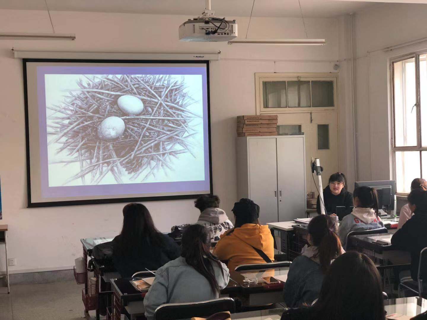 课堂中杨老师分为两部分进行讲授,第一部分为精细素描,首先讲述了精细素描的概念书、静物质感材料的表现方法以及绘画工具的使用要求,其次进行作品赏析。第二部分为造型重构素描,首先以塞尚、毕加索、达利为例讲述了造型重构的两大倾向及发展过程,然后组织同学们欣赏分析作品,提出问题并讨论。课堂气氛活跃,师生互动积极。