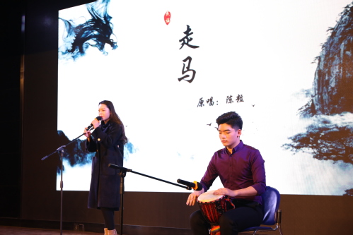 当非洲鼓遇见吉他,民谣《走马》表现出不一样的火花。辛之雷、李瑾怡、兰昊三位同学带来的民谣弹唱《走马》悦耳动听。师大话剧社的话剧《你好,李焕英》在晚会上进行首场演出,具有张力的故事通过同学们精湛的表演而表现出来,不需要歇斯底里,每一个眼神、每一个动作都令人动容,赢得掌声阵阵。2018级新闻班带来合唱《明天 你好》,歌声满怀希望与憧憬。六艺传媒,筑梦青春,明天你好,未来会更好。晚会最后的彩蛋节目是由2017级播音与主持艺术班的香巴才让带来的即兴rap,整场晚会也在热情似火的歌声里落下帷幕。