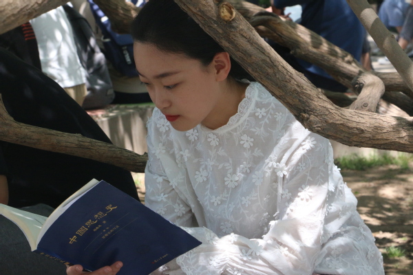 中午下课后,同学们陆续抵达旧文科楼遗址的核桃树下,捧起准备好的书籍,坐在花坛边上开始翻阅。活动负责人杨文丽组织大家参与“读书沙龙”、“诵读经典”、“图书互换”等活动,2018级学生刘建明、薛冬晨、朱胤熹、李云龙等分享了自己喜欢的段落及自己的感悟。读书带来的不仅仅是知识的增长,更是对世界的理解、对人生的思考。活动末,杨文丽向同学们征集读后感稿件,并鼓励同学们积极投稿。
