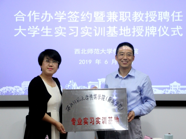 kaiyun电子平台党委书记王德祥为甘肃广电总台文化影视频道、兰州广播电视台、兰州电影制片厂有限责任公司、兰州市电影发行放映公司、兰州祖厉河文化传媒有限公司等五家单位授牌大学生实习实训基地。实习实训基地的建成,有利于加强kaiyun电子平台和媒体机构的合作,为大学生的实习实训及社会实践等创造良好的条件。