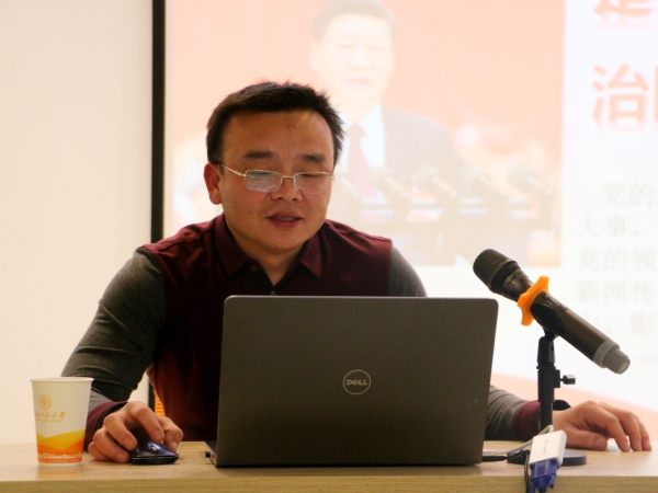 石培龙针对专题报告的主题,分别提出党的新闻舆论工作是什么、怎么做、什么人做、依靠什么做、做什么五个具体的问题,并一一进行解答和讲述。