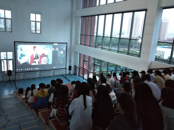 观影开始前,兰州电影制片厂总经理邵通对此次活动进行了简单发言,对《笑里藏刀》的导演做了简单介绍。观影过程中,老师和同学们被电影中的一幕幕剧情所触动,也不时被电影中的场景所感染而发出一阵阵欢笑声。作为当天活动的重头戏,《笑里藏刀》获得师生们的热烈掌声。