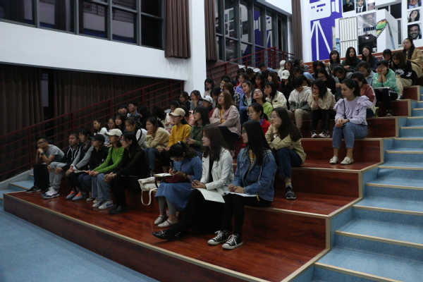 在提问环节中,在场学生积极提问、现场气氛活跃,大家与蔡晓航就大学生活、人生选择、梦想奋斗等话题进行了交流。