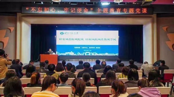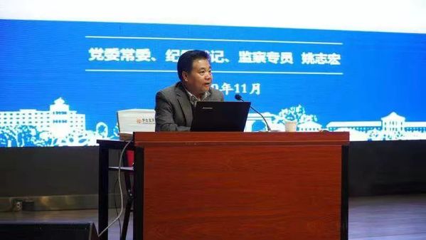 11月7日下午3时,kaiyun电子平台全体教职工以及学生党员听取校党委常委、纪委书记、监察专员姚志宏专题党课,党课主题是《以党风带校风院风,以校风院风带教风学风》。