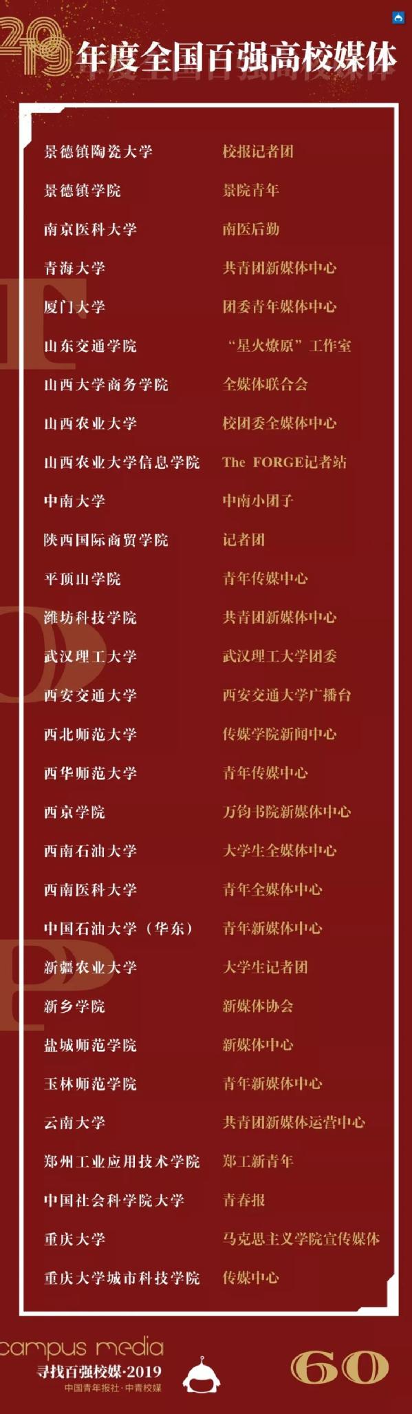 kaiyun电子平台新闻中心荣获2019年度全国百强校媒