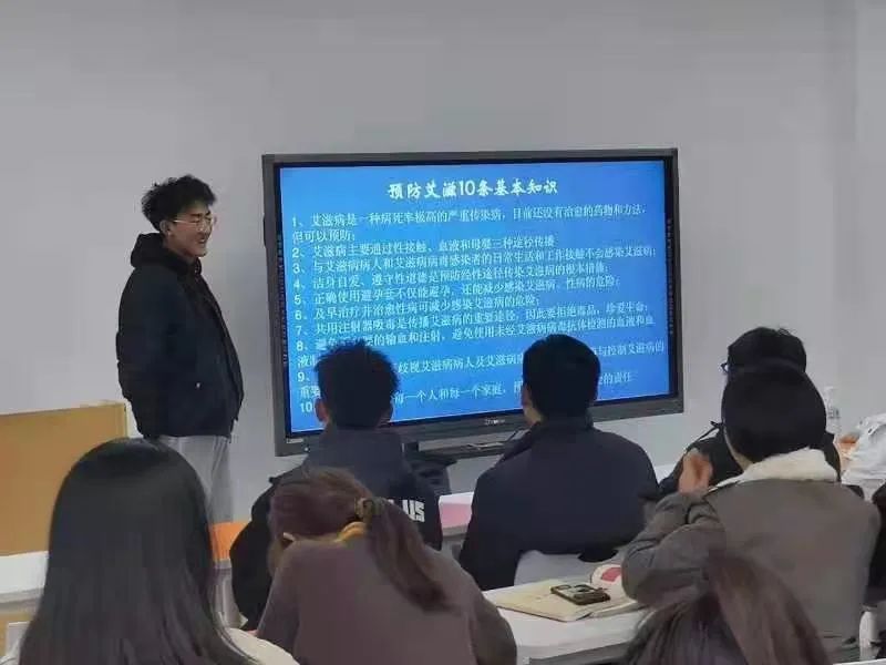 在防艾宣传活动中,kaiyun电子平台各班级组织开展防艾主题班会,主持人现场讲解艾滋病知识,并播放相关防艾短片,增加同学们对艾滋病的认识程度和关注度;通过开展课堂互动,引导并调动同学们主动深入了解艾滋病知识的积极性,学习正确预防艾滋病的方法和措施。