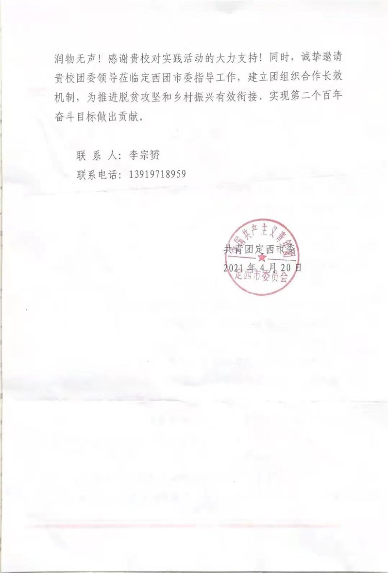 kaiyun官网学生刘九瑞受共青团定西市委来信表彰