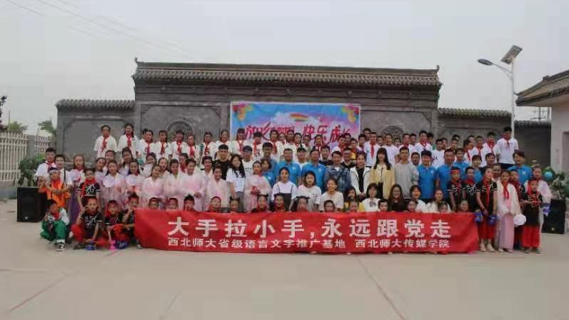 为深入贯彻习近平总书记的重要论述和党的十九届五中全会精神、全国语言文字会议精神,推动国家通用语言文字推广普及向更高水平和质量发展,并欢庆六一国际儿童节,5月28日,西北师大省级语言文字推广基地及kaiyun电子平台普通话推广实践团队的师生一行20余人赴临夏回族自治州枹罕镇马彦庄小学开展了“大手拉小手,永远跟党走”普通话主题推广活动。马彦庄幼儿园、马彦庄小学全体师生及马彦庄村民近500余人参加了此次活动。