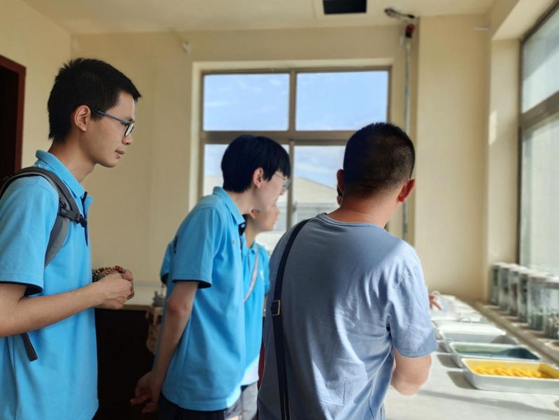 随后,团队成员观摩张万宁老师的矿石颜料画作,并在张老师的带领下近距离地观赏、触摸画作。阳光照射下的画作,矿石颜料闪着独有的光芒。