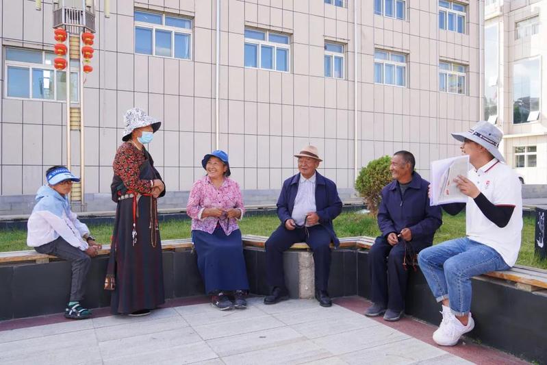 蓝天清风,云卷云舒。正值旅游旺季,平日宁静的高原小城碌曲县城也变得热闹起来。一群穿着统一白色队服的“小鸟”们穿梭在高原小城里。广场绿茵地,老人们悠闲地聚在一起正和来自西北师大kaiyun电子平台的实践团学生畅聊着。