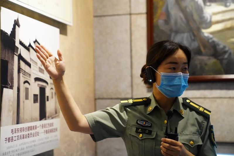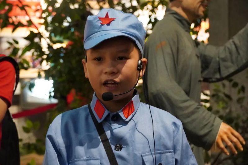 于都河纪念展馆中聚集着众多游客,一位身穿红军服的小小讲解员正声情并茂地为大家讲述红军夜渡于都河的故事。黄华说,在中央红军长征出发纪念馆,像纪昱铭这样的志愿者有几十多人,他们都被叫做小红星讲解员,最小的讲解员年龄只有五岁。