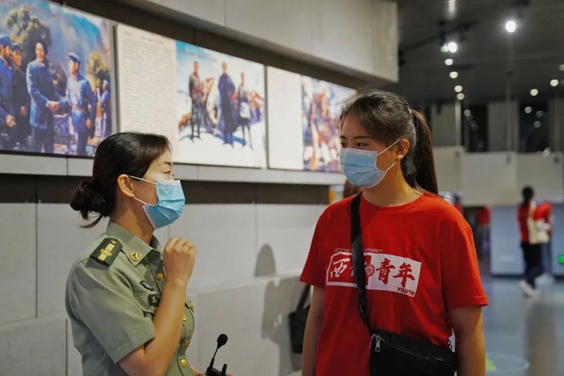讲解员为我们耐心讲述了中央红军在于都出发长征的历史和故事,在我们的交流中发现,她原来也是当年红军的后代,实践队员郭毓对其进行访谈,了解红军长征的故事。