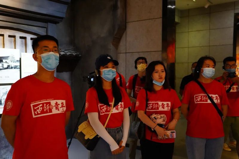 图为实践队员正在纪念馆内拍摄视频素材