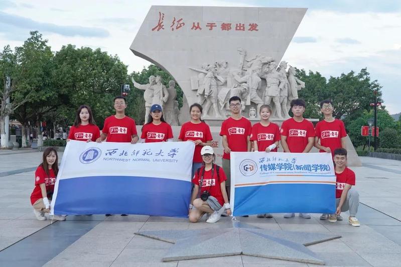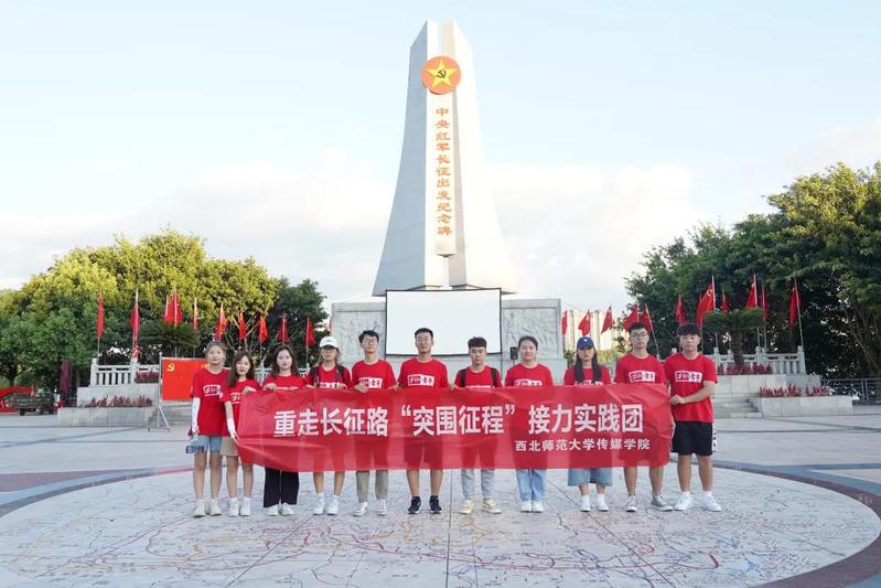 2019年习近平总书记来到于都县,瞻仰中央红军长征出发纪念碑,他曾勉励当地群众:“现在是新的长征,我们要重新出发!”实践团队从兰州出发,重走长征路,在长征精神中汲取营养,走好我们这代人的长征路。图为实践队员在中央红军长征出发纪念碑前合影留念。