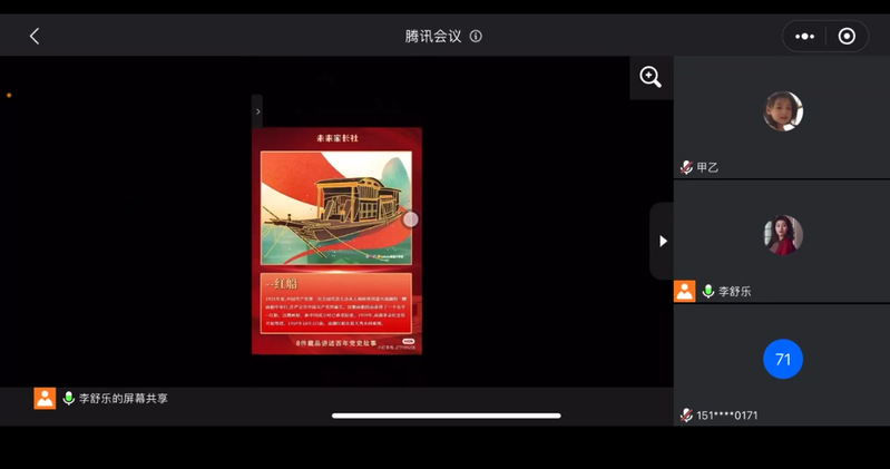 因为疫情原因,其他同学通过线上的方式开展了活动。李舒乐与他们进行了腾讯会议连线。