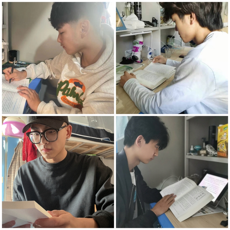 2021级广播电视编导和新闻学专业的男生们,也在宿舍开展了读书学习。