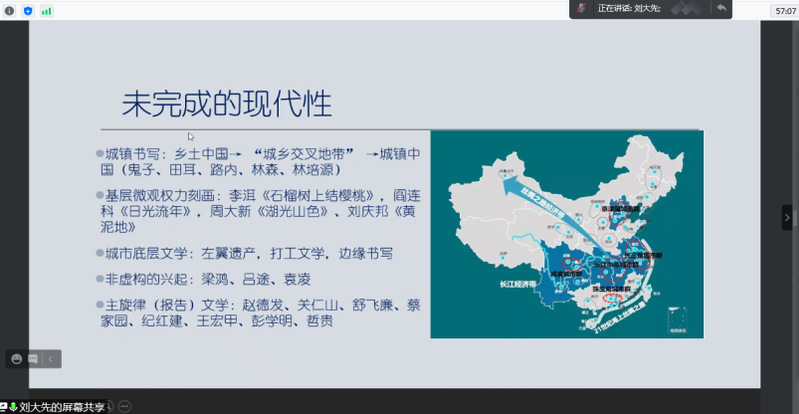 报告会上,刘大先教授重申审美与政治、文学、生活之间的关系,试图在建立叙述与政治、经济、社会的联结的意义上展开了讲述。“城乡互动与一体化进程形成了开放、动态而生机勃勃的乡村现实,促使我们必须对乡村进行再认识,进而强有力地扩展了乡村的经验领域、题材范围和表述空间”,刘教授阐述道。乡村振兴带动传统的扬弃与创新,意味着新型乡村主体的发现与创造。当代乡村不再是静止、凝滞、有待发现与改造的空间,而是流动、敞开、主动变革与更新的关系性场域,无论从生活方式、认识感受还是精神结构上,都承载着一个中西古今一切文化与技术的成果,并且时刻不停、永无止息地创造着自我世界。