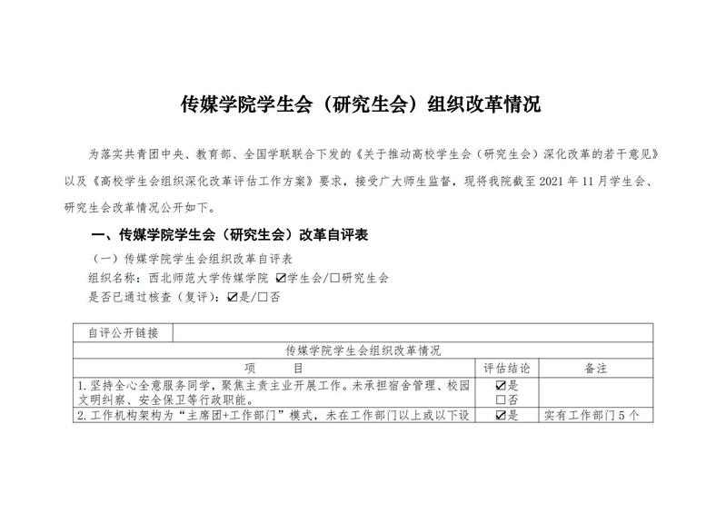 kaiyun电子平台学生会(研究生会)组织改革情况