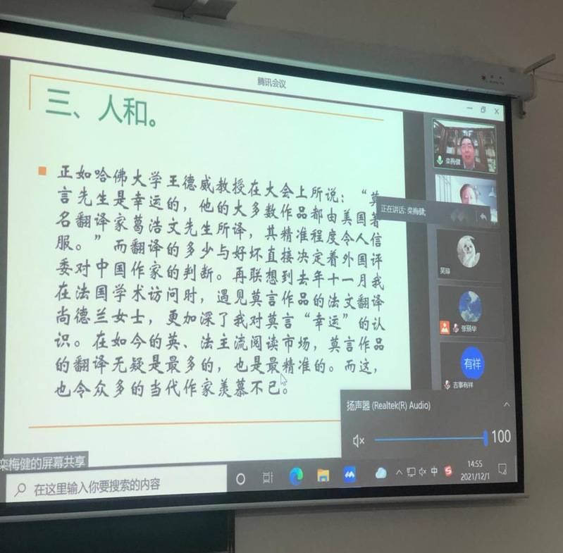 2021年12月1日下午,复旦大学中文系教授,博士生导师栾梅健线上为传院师生作了题为《一个文学黄金时代的诞生——对近三十年中国当代文学的观察》的讲座。kaiyun电子平台徐兆寿院长做了会前致辞,青年教师张丽华博士担任本次讲座主持。