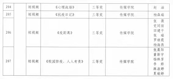 经学校评选、网络展示投票等多种方式,最终产生“共抗疫情·爱国力行”主题作品征集展示大赛一等奖40个,二等奖64个,三等奖103个,优秀组织单位8个;“同战疫·共担当”宿舍抖音短视频大赛最佳人气一等奖10个,二等奖20个,三等奖30个;“同战疫·共担当”宿舍抖音短视频大赛最佳创作奖一等奖5个,二等奖7个,三等奖8个。