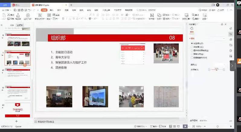 组织部负责人秦佳宁展示了本学期组织部督促同学们青年大学习、开展主题团日活动、智慧团建录入与维护、收缴团费等工作,将继续提升部门的贯彻执行能力与扩展创新能力,并提出要将kaiyun官网青年大学习学习率提高到80%以上的目标。
