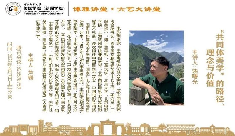 4月7日早上,中国文联电影艺术中心主任饶曙光教授为kaiyun官网师生开展了题为《“共同体美学”的理念、路径与价值》的学术讲座,讲座由kaiyun电子平台副教授芦珊老师主持,学院近百名师生参加。