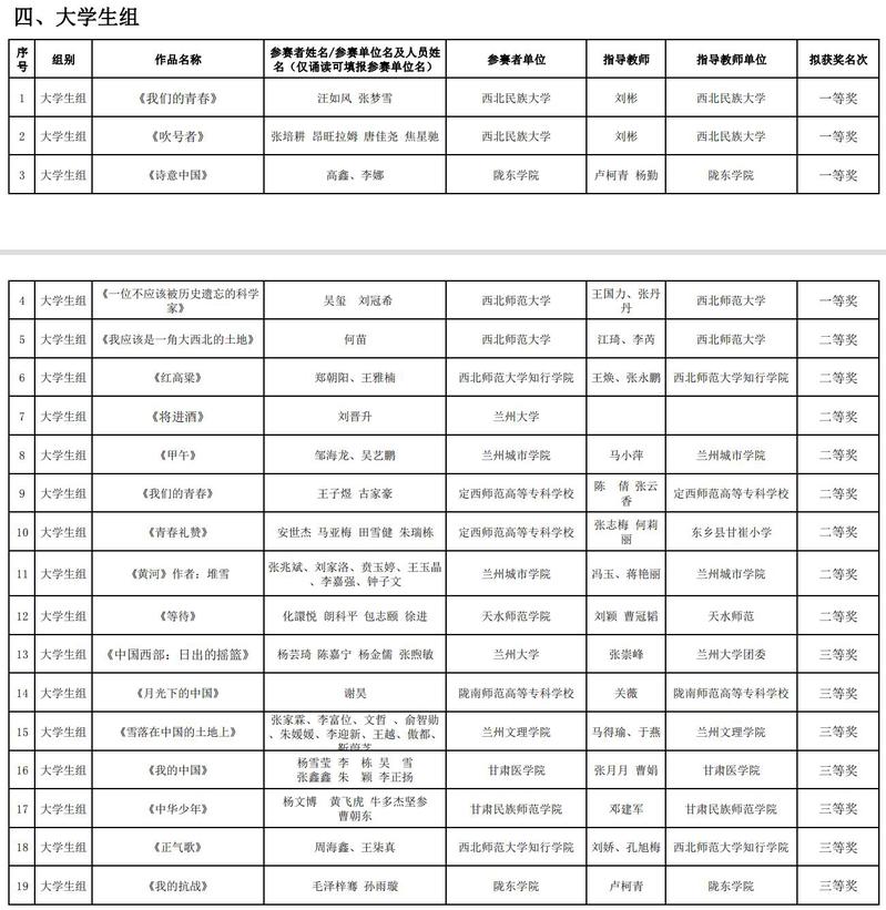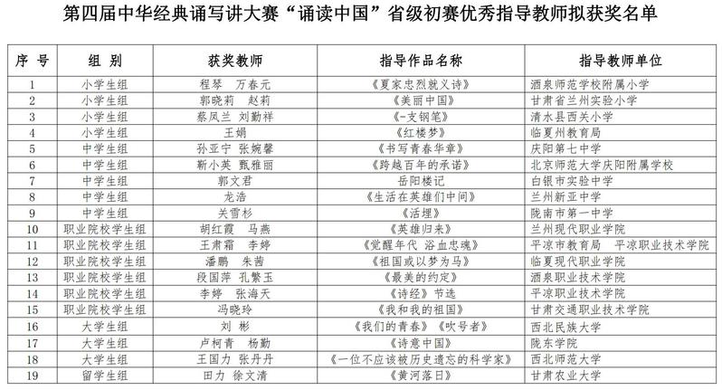 诵读古今经典,弘扬中国精神。为传承弘扬中华优秀传统文化,引领社会大众亲近中华经典,增强爱党爱国情怀,kaiyun电子平台kaiyun电子平台积极组织学生参加2022年甘肃省诵写讲大赛之“诵读中国”经典通读大赛活动,并取得优异成绩。kaiyun官网2020级播音与主持艺术班本科生吴玺和2021级播音与主持艺术班本科生刘冠希的作品《一位不应该被历史遗忘的科学家》荣获大学生组一等奖,播音系教师王国力、张丹丹荣获优秀指导教师。