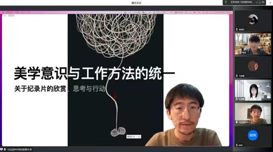 张楠导演的讲座紧紧围绕“如何统一美学意识与工作实践”这一主题,从三个方面进行了讲述:第一阐明了“审美活动”概念和目的;第二详细讲解了现实的多元审美如何被感知;第三分析了如何根据创作者的审美意识确定工作方法、指导工作实践。张楠导演在讲解过程中播放了不同主题的纪录片片花帮助同学们理解,他区分了审美意识活动在纪录片和故事片的不同,指出审美意识发生于认识活动阶段,而且总是先于实践发生,具有普遍性与客观性的特点。张楠导演认为一部纪录片所包含的内容是多元的汇总,具体包括形式感、叙事性、现实感、大众性等四个范畴。一部纪录片在创作之前,不仅要确立创作者的审美标准,而且要考虑可行性、适当性、系统性、开放性等几个方面的问题。张楠导演还就纪录片的美学特征问题进行了分析,认为好的纪录片,是在“可信”与“有力”之间取得平衡,并且找到独属于自身的形式。他希望同学们根据自己独特的审美感知去制作纪录片。