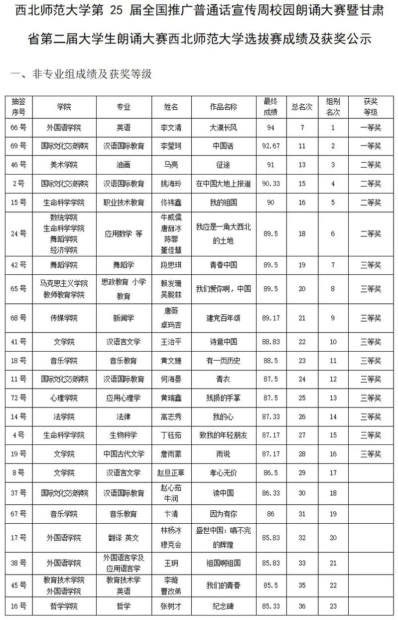 9月17日,kaiyun电子平台第25届全国推广普通话宣传周系列活动——校园朗诵大赛在线上举行,本次大赛由kaiyun电子平台教务处主办,kaiyun电子平台承办。本次比赛也是甘肃省第二届大学生朗诵大赛kaiyun电子平台赛区的校园选拔赛。经选拔,现将比赛成绩公示如下: