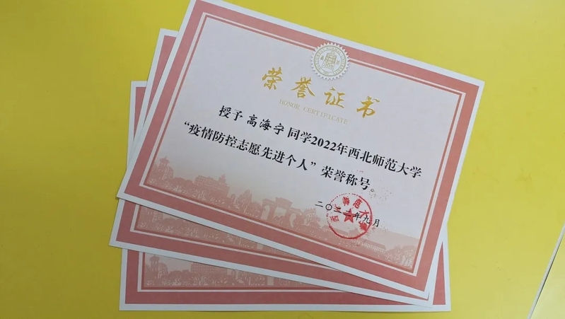 “荣誉证书和床帘,一面是认可,另一面是关怀。将宿舍用于疫情防控需要是我毫不犹豫的选择,而学院对我选择的反馈,更加坚定了我心中的责任感。”2021级播音与主持艺术1班李璐璐表达出了愿以小我奉献大我的态度。